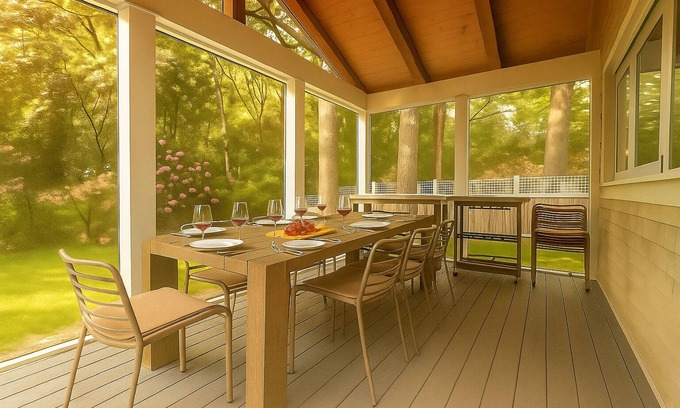 We have a beautiful scenic backyard, though it is not fully fenced. Please note that there is a body of water near the property, so we kindly ask guests with children to take extra care and supervise them at all times.