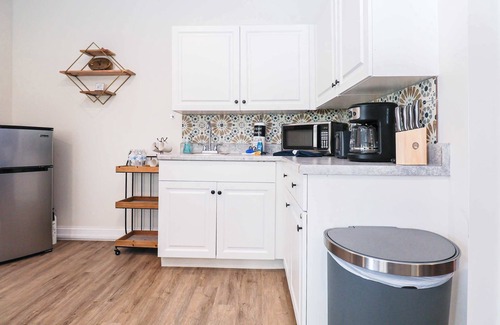 Inside, you’ll find a queen-size bed for restful nights and a queen pull-out sofa for extra guests or simply lounging around. The kitchenette has all you need with a mini-fridge, microwave, stove, and coffee maker—perfect for whipping up something quick or enjoying a slow morning with coffee in hand. And with your own private laundry room, you’re all set for longer stays too.