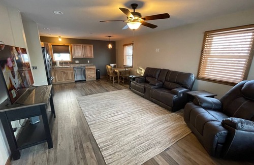 This unique, newer two bedroom house is set up for the working professional, one level, in floor heat, an office room with desk/chair, close to Everything on the South end of Grand Rapids. Very quiet, newer housing development area. Fully furnished, Stove, Refrigerator, Microwave, Dishwasher, Washer/Dryer, dishes, glasses, silverware, utensils, toaster, pots/pans, WiFi, 58" Roku TV, & all utilities included. We offer lower rates for longer rental periods if your job should extend out.