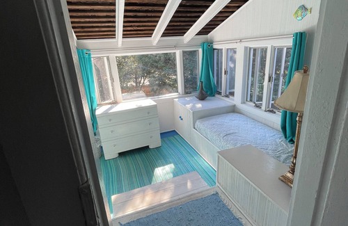 This comfortable, roomy, two-story house, lovingly maintained, is ideally located on a quiet block, seconds from the beach and a few minutes walk to Ocean Beach’s wonderful restaurants, grocery stores and boutiques. The fully renovated kitchen has quartz counter tops, a full set of non-stick pots and pans, and a large refrigerator. The roomy living room has a “smart” HD television with DirectTV, a stereo system, WiFi (Internet access) and lots of games and puzzles for the kids. Common rooms downstairs and all but one of the upstairs bedrooms are equipped with quiet, individually programmed AC/heat. Enjoy meals in the handsomely furnished dining room, or grill steaks and relax on the spacious back deck.