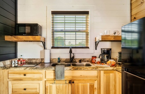 Located in a quiet and brand new neighborhood, our cabin is packed with everything that you need and features the following: smart TV, fully equipped kitchenette for home cooked meals, cozy electric fireplace, outdoor seating, relaxing hot tub, fire pit, charcoal grill and starter kits to help you get started on your perfect vacation!
