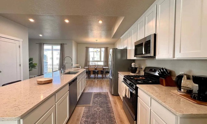 Newly Built Chic Utah Valley Gem l Theo by Stay has 4 Bedrooms , 3 Bathrooms, and max occupancy of 8 people. The minimum rental for this property is 1 nights, but this can change depending on the season you plan on staying. Previous guests have given good rated it, and VRBO labeled it a top-rated House because of the excellent services rendered by the owner or manager of this House, and has consistently provided great experiences for their guests. Most families or guests that use it recommend it to their friends and some of them are repeat guests. House has a friendly neighborhood, and the American Fork has interesting places to visit. If you want to learn more about the House in American Fork, such as places to visit and things to do nearby, you can check below to learn more.