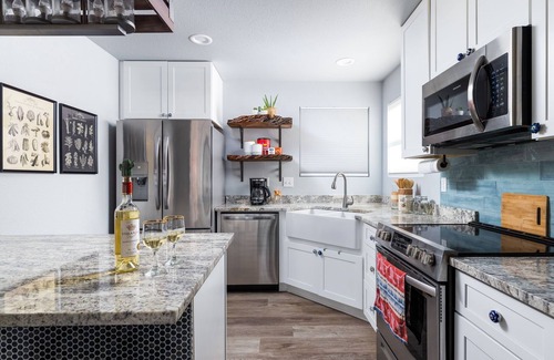 The living room and both bedrooms include mounted flat-screen smart TVs where you'll be able to access tons of entertainment apps through Wi-Fi.