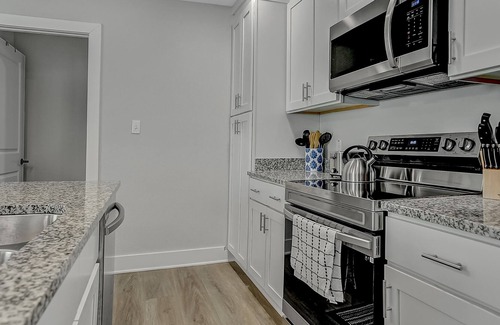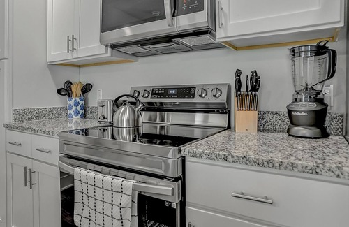KITCHEN: Fully equipped w/ stainless steel appliances, bar seating, microwave, both single serve and traditional coffee makers, toaster, blender, knife set, full cookware set, full dish & flatware sets, coffee mugs & wine glasses.