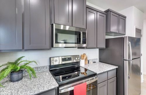 Discover a contemporary oasis at this conveniently located vacation rental in Temple, TX! Ideally suited for sightseers, families, and traveling professionals alike, this 3-bedroom, 2-bath duplex home offers all the essentials for a stress-free stay. When you're not out and about, you can easily prepare at-home meals, stream your favorite shows on the Smart TV, and enjoy leisurely strolls at the nearby James Wilson Park.