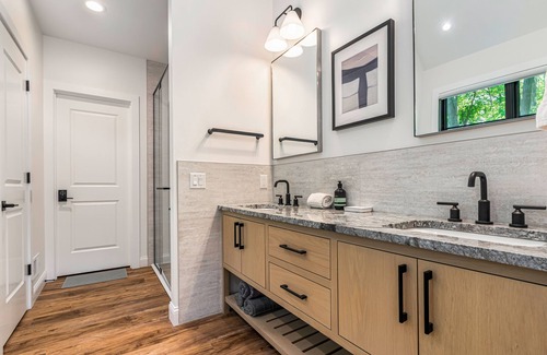 In the evenings, retreat to the home office to log onto the high-speed WiFi, stream your favorite movies on the smart TV in the living room, and leave the day's swimsuits in the care of the brand-new (2023) washer/dryer. Of the four bedrooms, two are primary suites with en suites. One of them features a large soaking tub and a walk-in shower while the other includes a large walk-in shower, giving all your guests wonderful sleeping options and the privacy they desire.