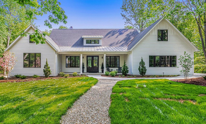 Experience a classic Lake Michigan vacation in the luxe comfort of a brand-new, custom home at this three-acre property a one-mile stroll from Harbert Road Beach. Spend your days swimming in the sparkling pool, watching your kids play in the yard and sandbox, and barbecuing at sunset outside on the patio.