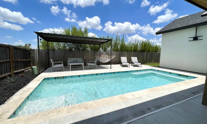 Newly built modern farmhouse w/private pool! Central location is located in Pharr. Newly built modern farmhouse w/private pool! Central location provides accommodation, featuring Air Conditioner, Pool, Bedding/Linens, among other amenities. This House features Air Conditioner, Pool, Bedding/Linens, to make your stay a comfortable one.