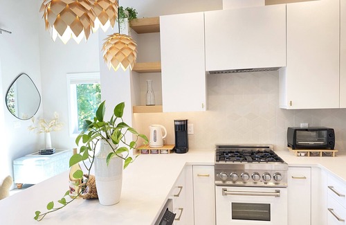 Quiet oasis with beautiful peaceful surroundings and hot tub. This beautiful guest house is nestled in a serene setting surrounded by nature. Located in a well established historic neighborhood, near parks, restaurants, theaters and wineries, this beautiful property is truly one of a kind. The modern and peaceful decor sets this special property apart from most. Warm accents, comfortable surroundings, beautiful fixtures and top of the line appliances make this unique property a perfect get away. Centrally located in the Rogue Valley, rivers, lakes, wineries, hiking trails, and great restaurants are just minutes away. Free high speed WiFi and large smart television to watch your favorite streaming services. Please keep in mind that the property has direct access to a swimming pool and hot tub. Access to the water from the cottage is NOT protected by fence or gate. The pool and hot tub are professionally maintained on a weekly basis. If you would like to use hot tub please let us know at least 1 hour prior to the time you’d like to use it so that we can have it ready for you. The pool and hot tub hours are 8 AM to 10 PM.