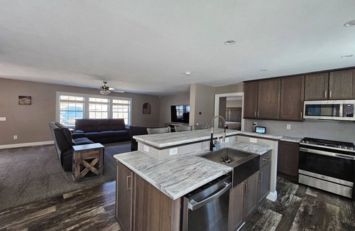 Designed for bringing family and friends together, entertaining and making memories! This newly built 5 bedroom, 4 bath home, sleeps 22! There is an abundance of outdoor space, not only for parking large trucks and trailers, but for outdoor fun, as well! Located in a secluded, quiet area, within walking distance to Val Du Lakes Bar & Grill.