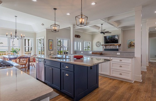 KITCHEN - The kitchen is fully stocked with everything you would need to cook a five-course meal or today’s fresh catch, from the Thermador 6 burner gas range to the burners needed to cook the crabs caught from the dock. A coffee bar and wine cooler ensure your favorite beverages will not be far away.