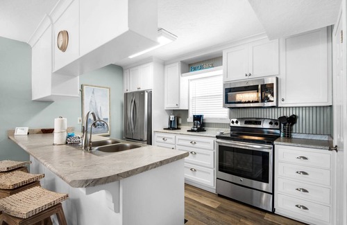 When you stay at "Cloud Nine By the Sea," you are only steps from the breathtaking beaches of the Gulf of Mexico! Not only are you able to take advantage of the close proximity to the beach, but you can also enjoy the gorgeous views of the water without ever taking a step outside of the home. The home boasts not one, but two, balconies, both with Gulf views. So whether you are inside hanging out with the family, or outside, taking the very short walk to the beach access, you're able to take in the wonderful views of the stunning emerald green water and white sand beaches. While inside the home, you will enjoy the beautifully updated interior, complete with an open floor plan, a chef's kitchen, and 2 King Suites!
