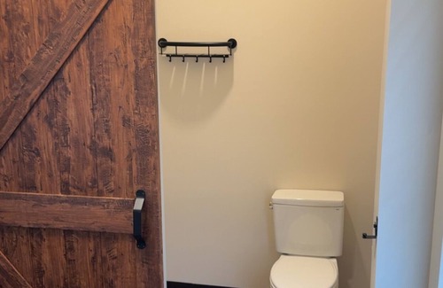 The stylish rooms features a queen bed, dressed in crisp linens and inviting you to rest and relax. This room has a private toilet, but shares a common shower with another room. There is a coded lock so the shower area is private. This room comes complete with the essentials for a comfortable stay. Take advantage of high-speed Wi-Fi, perfect for staying connected or catching up on work, while enjoying the convenience of USB charging ports and a laptop-friendly workspace.