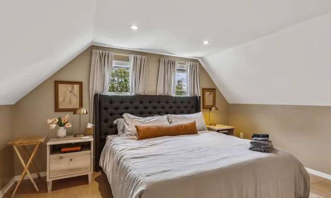 The house has a spacious kitchen with plenty of countertop area, a convenient half bathroom, a formal dining room, and two living areas (one of them has smart TV but you can watch the TV from both areas) on the first floor. Ample free parking is available in the driveway and on the street. Guests are welcome to use both the front and back porches, though furniture for these areas is not provided. Upstairs, the second floor has three bedrooms, including two with queen-sized beds and one with one king-sized bed and queen sized bed, along with a full bathroom. The spacious third floor features two twin beds and a king-sized bed. Laundry machines are located in the basement.