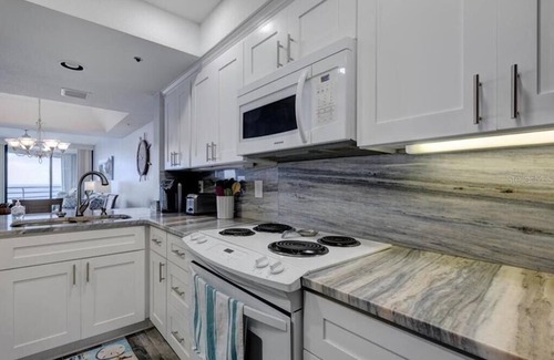 Upon entering this upgraded luxurious oceanfront condo you will be transitioned into a calming coastal oasis. With granite countertops, shaker cabinets, tile floors, and beautiful furniture; it’s impossible not to breathe easy! With 3 flat screen TVs, Sonos speaker, high speed Wi-Fi, you won’t miss out on any of the luxuries of home.