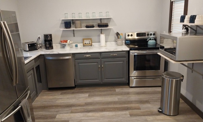 Located directly across the street from the famous Lehman's Hardware in Kidron, OH. Guests will have this ENTIRE house that sleeps up to 10 for one low price. Large jetted walk-in shower and garden soaking tub!!! ****ATTENTION****We understand that inflation and economic uncertainty plays a major role in taking a much-needed vacation. We have decided to do something different to help our future guests for the upcoming year. We have REDUCED our nightly rates and fees for 2024, so that guests can still take that special journey into Amish Country!!!! We hope this is a blessing to those that choose to book with us.