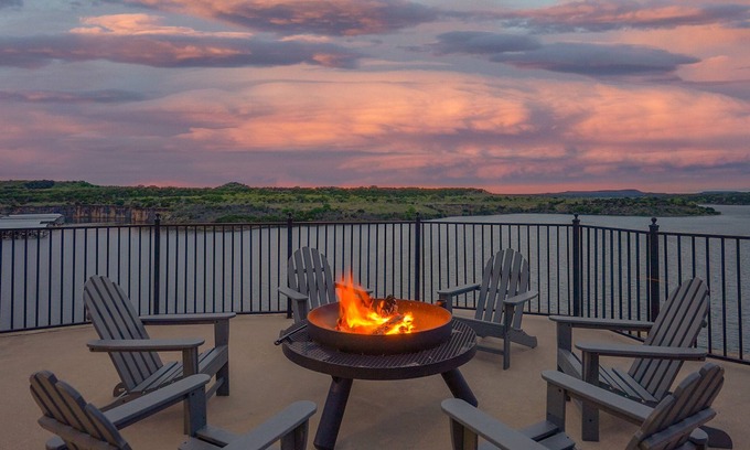 Looking for a family retreat or place to get together with friends on the lake? This stunning home sits on a cliff overlooking Possum Kingdom Lake with breathtaking views! Sleeps 12 with 4 Bedrooms and 4 bathrooms. 2 King bedrooms, each with their own ensuite bath, 1 queen bedroom with private bath and 1 bunk room with bath (6 beds). The bunk room has a small game area with a tv for kids to relax and play board games.