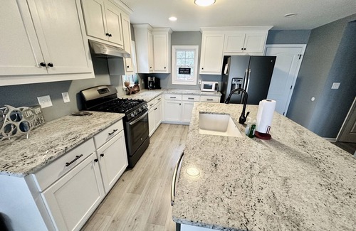 Look no further! Lake Jordan Refuge is NEW to the rental market and has EVERYTHING you are looking for! We went above and beyond with all new, top of the line renovations, furnishings, décor and amenities to make your stay one to remember! This spacious 4 BD, 2.5 BA lake front house can sleep 8 guests comfortably (on all new top of the line mattresses). The incredible game room is a fan favorite! Enjoy a game of pool on the new regulation size pool table or kick back and watch a game on the big screen smart TV. When at the lake, we know the importance of the outdoor living space too! With 5 outdoor patio areas, guests can always find a spot to relax and enjoy the stunning lake views. Enjoy a cup of coffee from the screened in porch overlooking the lake. Layout and soak up the sun while sitting down by the water on the boathouse dock or on the lakeside patio. We have a kayak, paddleboat, and lily pad for your enjoyment. We also provide outdoor chairs and loungers for your convivence. We have installed no slip steps for you and your fur babies to get in and out of the lake at ease. Get your grill on, and have dinner while enjoying the sunset on the outdoor patio/dining table. Roast s'mores or play the guitar at night while relaxing by the firepit.