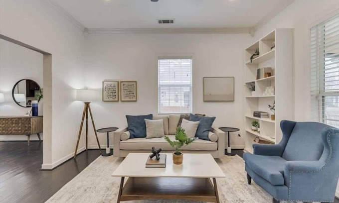 Our lovely 3-beds, 3-baths home in Dallas is ready to welcome you! You will be in a quiet street, but near many amazing amenities and attractions, including Bishop Arts, Trinity Groves, and Downtown Dallas, only minutes away from night life, and award-winning restaurants. The cottage-style home combines 1950s charm with a modern and contemporary furniture. You’ll have everything you need right here, including a fully-loaded kitchen! Our home is the Dallas accommodation you’ve been looking for.