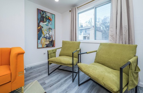 Relax in this calm, newly fully renovated stylish space. Everything is brand new and spotless. Given the name Carnegie "Melon" due to its unique color scheme in each room. Enjoy a quiet great neighborhood while you're in town for business or Leisure. Comfortable beds *brand new* w/ a Bluetooth shower experience like no other. Electronic check in is also a breeze. Enjoy the luxury of the all-new kitchen and granite island. New luxury vinyl floors and carpet awaiting your next step.