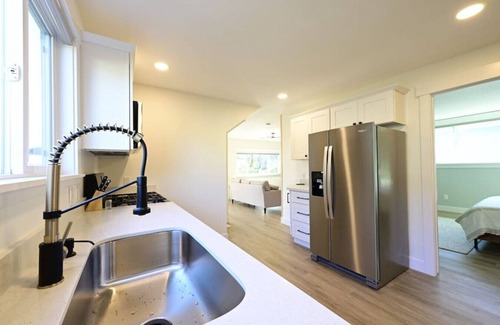 The space is 852 sqft, and thoughtfully renovated with care and intention to create a high-end experience to enjoy while visiting Oregon. Everything is brand new including a "Casper" Memory Foam mattress, LG Washer and Dryer, stainless appliances, and furniture. gigabit WiFi, and workspace.