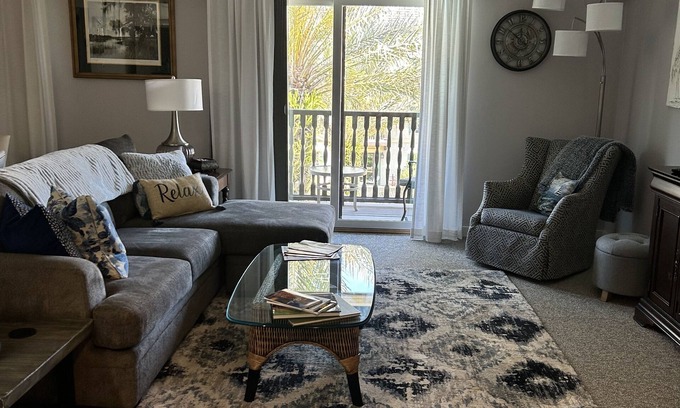 Newly renovated condo. One bedroom, one full bathroom. Laterra Condominiums and Spa has lobby swimming pool, Also 2 golf clubs open to public within The World Golf Village. A 24/7 Security gate. Guests are texted pass for length of stay. A lockbox outside the lobby entrance has Unit 306 room key& fob. The access code will be texted the day of checkin. Also has fitness center, heated lap pool, a Lazy River pool, tennis & pickle ball courts. Close to the beaches, golf clubs, and historic downtown St. Augustine, oldest city in the USA. Complimentary coffee/tea, bottled water. Many towels, washer & dryer, inflatable air mattress if needed, size Queen & Twin. AT&T Fiber wifi, 2 smart TV’s, free parking, luggage carts in pull up lobby. Beautifully maintained grounds, very quiet peaceful setting. Minimal traffic. Easy to navigate to on your GPS. 955 Registry Blvd., UNIT 306, St. Augustine, FL 32092.