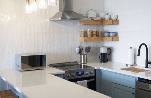 Step into a bright, open-concept retreat. This fully updated lakeside getaway has everything you need for a relaxing stay—plush beds, high-speed Wi-Fi, smart TVs, and a fully stocked kitchen.