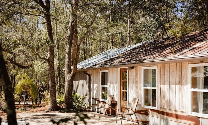 Nestled on a sprawling lawn with ancient oaks & a lake. There is even a hand crafted cedar chapel by the lake. This cottage is the perfect quiet, restful getaway, ready for you to relax & unplug. Located just 15 minutes from downtown Fairhope!