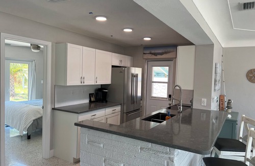 Come soak up the sun and be among the first to stay in this brand new 2024 renovated 2-bedroom home! Perfectly located in Fort Myers Beach, with just a short walk down the street to the beach with access across the boulevard and just under a mile walk to Margaritaville and Times Square for shopping and dining. Open concept living area features a living room with a 65" flat screen TV and a sofa bed. Enjoy the peaceful backyard and BBQ on your gas grill.