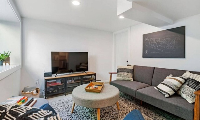 Walk to everything! Super close to restaurants, bars, parks and shops! Freshly renovated and located just one block off Hawthorne, this spacious and bright one-bedroom basement apartment is the perfect spot to relax after a day of hiking, biking or shopping. Smart TV in both the living room and bedroom as well as an ample selection of board games. Couch pulls out into a futon for extra guests. Fully equipped kitchen and full bathroom with a tub. Laundry is shared w/ main house.