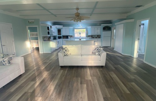 This newly remodeled home features all new appliances and furniture, boasting an open layout with large kitchen and island. Two bedrooms provide comfortably large king beds with the third room made up of 2 sets of full size bunk beds. It is the perfect location for two families or a friends getaway.