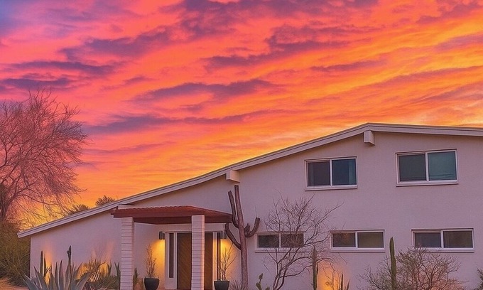 When 'desert destination' describes your ideal getaway, it's time to book this fabulous Tucson vacation rental! Surrounded by a variety of cacti, desert foliage, and mountain views for miles, this 5-bedroom, 2.5-bath house is a welcome respite for families & outdoor enthusiasts. Cook up a delicious meal in the fully stocked kitchen, unlimited play in the private yard, a large pool & kid games or venture out to nearby attractions like Saguaro National Park and the Mercado San Agustin. Book
