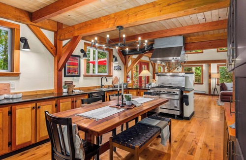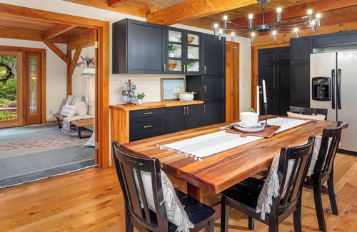 Rustic beauty! 3,000 sf Timber Frame set in a wildlife sanctuary I in on the north end of Camano Island, Washington. The Island House offers a luxuriously private gathering place for friends and family, retreat groups, workshops, and more. 2 1/2 private acres surrounded by ponds, natural wetlands, over 50 acres of wildlife preserve, and close to all Island amenities.