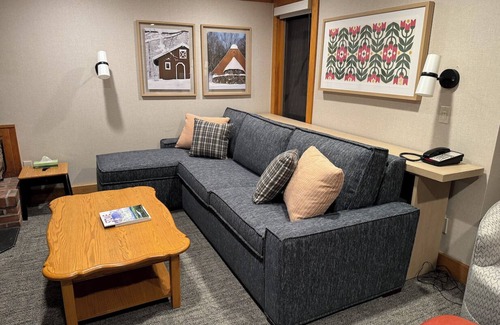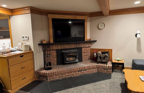 Located in the charming town of Stowe, this updated 2-bedroom Guest House offers the best of both worlds: quiet mountain views and full access to the Austrian-inspired Trapp Family Lodge. Known for its "Sound of Music" heritage, the Lodge offers a unique blend of European charm and untouched Vermont beauty—“A Little of Austria, a Lot of Vermont.”It is the perfect escape for families, couples, or friends seeking a peaceful getaway. As the last leaves give way to the promise of snow, experience Vermont’s most magical in-between season—crisp air, quiet trails, and cozy nights in spent by an open fire. Your stay promises memories that will last long after you leave! One king-size master suite with an ensuite bathroom, and a pair of twin beds in the second bedroom with a bathroom across the hall. Perfect for little ones! Includes well-appointed galley kitchen. Large open floor plan living room and dining room with wood-burning stove (unlimited wood supplied on property), a large flat screen TV, and well-appointed rooms.Gorgeous views of the Green Mountains from the living room and private balcony. Privately owned but professionally managed by the Austrian-inspired Trapp Family Lodge of "Sound of Music" fame (trappfamily.com). Included in your stay is access to the fitness center with an indoor heated swimming pool, gym facility, outdoor hot tub with gorgeous mountain views, and sauna. You also have access to the Outdoor Center with 40 miles of cross-country ski trails, ski rentals, and access to all that is offered on the Trapp Property. Enjoy the on-property Lodge Dining Room, Trapp Family Bierhall, the Kaffeehaus/Bakery/Deli, laundry facilities, and the abundance of nature on the Trapp property, or drive down the mountain to enjoy the village of Stowe, Vermont. or Stowe Mountain Resort (less than 5 miles).