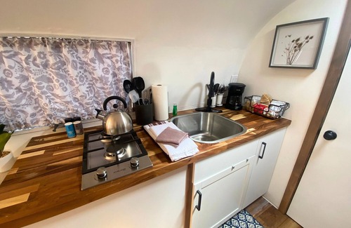 One Queen bed. Sleeps: 2 Pets: 2 Parking: 1 2- burner cooktop, toaster, microwave, coffee maker & mini fridge. Cookware, dishes, silverware, etc. provided. Shower, sink toilet. Towels, shampoo and soap provided Smart TV located in the bedroom. You can sign into and watch your streaming services (Netflix, Hulu, etc.) on the TV, we do not provide any TV services/cable at this time. A one-time cleaning fee of $45 will be added to your stay at checkout. Dogs are allowed for a one-time, non-refundable cleaning fee of $50 for up to two dogs in rented accommodations. No additional pets are allowed.