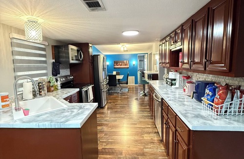 Located in Mason. this brilliant house boasts 4 bedrooms including 2 queen beds, 1 king bed, and 1 twin bed. With 3 bathrooms equipped with showers, guests will have all the space they need to relax and unwind. The delightful property also features amenities like a washing machine, WiFi, and AC. Book now and enjoy everything this house has to offer.
