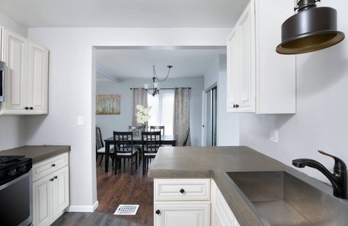 Located 3 doors down from famous Christmas Story House Museum. Unit is fully renovated with high end finishes to accommodate up to 5 Airbnb Guests. Located in a duplex. This is upstairs unit and has private entrance. Open floor kitchen with custom made concrete countertop, full set of stainless steel appliances. Has dinning room, living room, laundry facilities on the side 2 full bathrooms and 2 bedrooms. Cable Tv and Wifi.