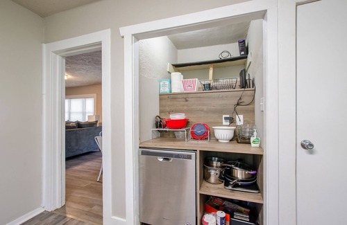 Thanks for a great stay! We especially enjoyed the porch and the big yard for our dog. Obviously we needed the extra parking too! If you have other longer term guests, they might appreciate a baker's rack in the kitchen and a spot to hang or fold clothes downstairs.