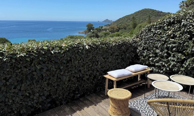 5. All opening onto the 30 m2 (323 Sq Ft) terrace offering an amazing panorama of the sea and of the Sanguinaires Islands. It is equipped with electric blinds, a table with 6 chairs, 2 deckchairs and a barbecue.