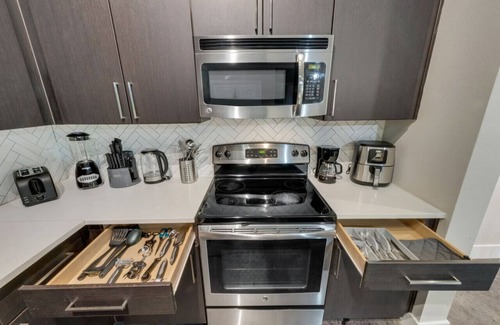 5 mins from the Dallas Love Field Airport, this stylish experience is situated in the heart of the Dallas. This modern and stylish 2-bedroom apartment offers a prime location with easy access to downtown, uptown, Lower Greenville, Deep Ellum, the Katy Trail (all less than 10 mins away). With its thoughtful design, smart home automations and premium amenities, this apartment ensures a comfortable and convenient lifestyle.