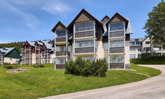 The apartment house is situated 9 km from the center of Vitkovice and 20 km from the center of Jilemnice, Czech Republic. Additionally, it's located near various attractions, including the skiing area just 50 m away, offering convenient access to outdoor recreational activities.