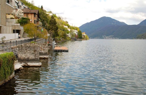 Morcote 11 km from Lugano: Rustic 3-family house "Scüron", 272 m a.s.l.. In the resort Morcote, in a sunny position, excellent location: right in the centre but still quiet, traffic calmed area, 10 m from the lake, south-east facing position. Motor access to the house. Public car park at 200 m. Grocery 50 m, restaurant, café 10 m, pedestrian zone 5 m, bus stop "Postauto Linie 431" 100 m, railway station "SBB-CFF Melide" 5 km, bathing lake "Lago di Lugano". Walking paths from the house 5 m. Nearby attractions: Morcote: Parco Scherrer, Wallfahrtskirche Santa Maria del Sasso, Swissminiatur Melide, Mercato Ponte Tresa IT, Mercato Luino IT, Outlet Foxtown, Mendrisio, Splash and SPA, Rivera. Well-known lakes can easily be reached: Lago di Como, Lago Maggiore. Hiking paths: Monte San Giorgio(UNESCO), Monte Tamaro, Monte Generoso, Monte Lema, San Salvatore, Monte Bré. The owner does not accept any groups. The owner does not accept any youth groups. Please note: Loading and unloading of baggage is possible at the holiday house. Neighbourhood highly sensitive to noise. Quietness and good behaviour expected. Apartment in the “first row” with a 180 degree panoramic view over Lake Lugano. Opposite is the Ticino village of Brusino Arsizio with the cable car to Serpiano. The Italian fishing village “Porto Ceresio” invites you to linger. SPECIAL: Season 2023, when you present your travel documents, you can enjoy a 20% discount on the entire bill in the RISTORANTE OASI when consuming a main meal. (Except when the restaurant is closed).