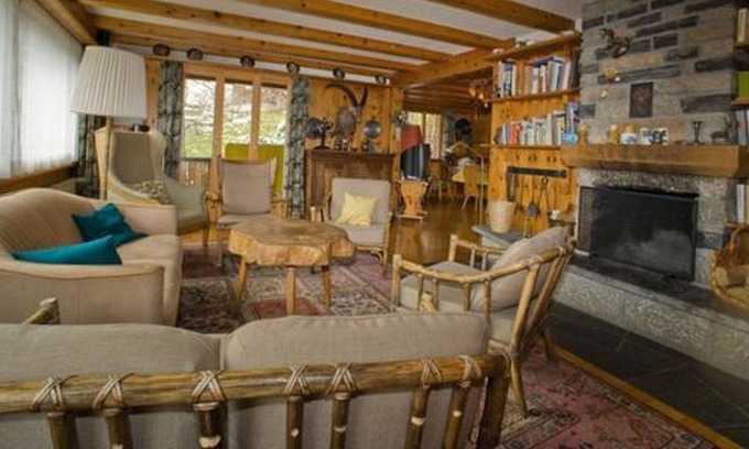 The 6.5 apartmentcomprises the first and the second floor of the chalet. Large windows, feature fireplace. Large balcony with view onto the mountains and the World Cup slope. 2 beds out of 10 are in a small room under the roof. 2 parkings. Pets are not allowed. Firewood: CHF 25.00.