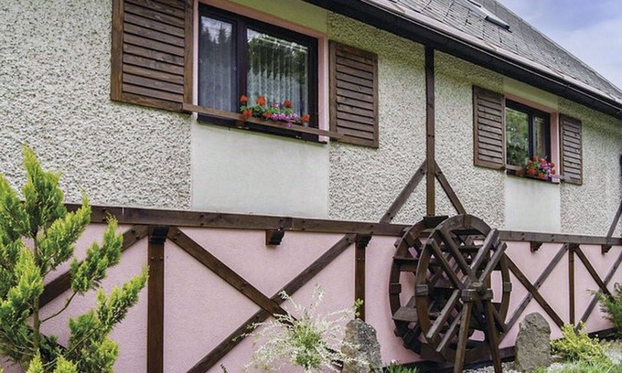 Explore nearby attractions like the Muzeum Aloise Jiráska/Hronov (8 km), Adršpašsko-teplické skály (17 km), Broumovské stěny, Náchod (17 km), Ratibořice a Babiččino údolí (20 km), Broumov (28 km), and Relaxpark Pec pod Sněžkou (50 km). Ski enthusiasts can easily access the slopes at Radvanice (10 km), Petřikovice (16 km), Mladé Buky (34 km), and Janské Lázně (40 km), while the vodní nádrž Rozkoš lake is just 25 m away. A children's house in the garden and the option to arrange meals at a private club within 250 m (upon request) add to the convenience. This cottage can be rented as a whole house or as separate apartments during the low season.