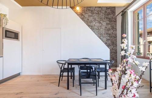 Welcome to our pretty air-conditioned duplex a stone's throw from the Place du Pin district! Enjoy a privileged location with excellent bars & restaurants, innovative concepts and the best food shops in Nice.The apartment is located on the third and last floor without elevator of an art deco style building. The accommodation faces rue Barla and has a small balcony to enjoy a breakfast in the sun, the apartment is equipped with double-glazed windows.The accommodation is arranged as follows:- Upon entering the accommodation you arrive directly in the spacious & bright living room equipped with a lounge area with sofa, TV, free wifi connection; a dining area and a fitted open kitchen (microwave oven, refrigerator, dishwasher, washing machine, Nespresso Vertuo coffee machine, kettle, toaster, etc.)- To access the sleeping area you will have to take a fairly steep staircase, you will arrive in the air-conditioned bedroom with dressing room and adjoining bathroom (walk-in shower, vanity unit, WC, towel dryer, hairdryer).Bed and bath linen are provided by a professional service provider, as well as welcome products for your arrival (small soaps, coffee).The products at your disposal are indeed welcome products, to allow you to arrive with complete peace of mind. However, we cannot guarantee that they will be sufficient for the entire duration of your stay. It depends on your personal consumption.