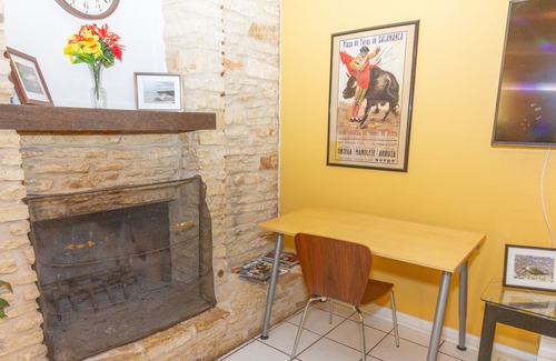 Dedicated workstation with a desk and a chair. Business travels, vacation and short-term rental.