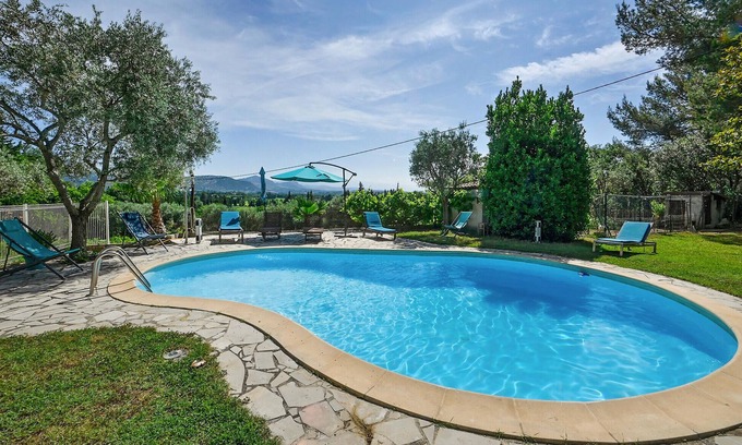 The apartment is located 3 km outside Sarrians, a small town between Carpentras (7 km) and Orange (15 km), 15 km from the historic city of Avignon. You will stay on the border of Provence and Drôme, in the middle of vineyards with a beautiful view. A beautiful area, made for walking and cycling. You live in the right part of this house. The river Ouvèze, where you can swim, is 6 km from your house. You live here very quiet and in clear weather you have a beautiful view of Mont Ventoux from your terrace by the swimming pool. Adjacent to this is the orchard; here you can sunbathe, read or just relax in peace. On this very spacious property is also the house of the owner. This sympathetic winegrower will fully respect your privacy. The terrace is also accessible via a (wheelchair) ramp.
