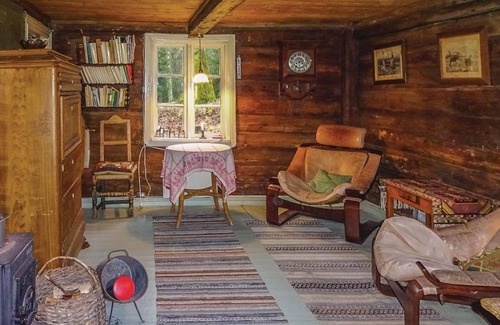 Your holiday home is secluded on a large wooded plot and offers you a time-out close to nature in the middle of the Swedish countryside. Look forward to the rustic interior with wooden walls, historic furniture and cosy seating. In the living room, the fireplace and wood-burning stove create a cosy atmosphere, while the dining area offers space for communal meals. The kitchen is simply equipped but functional.