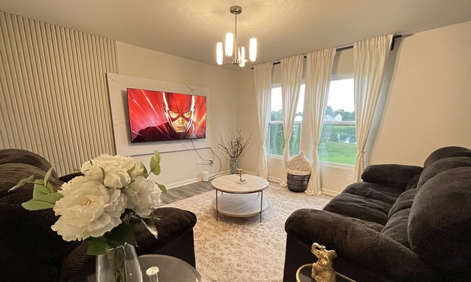Welcome to our stunning four-bedroom home with a breathtaking pond view! Nestled in a tranquil setting, this brand-new construction promises an unforgettable getaway for you and your loved ones. With its modern design and picturesque surroundings, it's the perfect retreat for relaxation and rejuvenation.