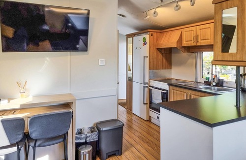 This houseboat is located directly on the harbour pier and offers you a beautiful panoramic view of the water. A light-flooded living room, a comfortable sofa and a practical kitchen create a relaxed atmosphere in which you can quickly get into holiday mode. Spend relaxing hours reading or listening to music, or try out new recipes while cooking together.